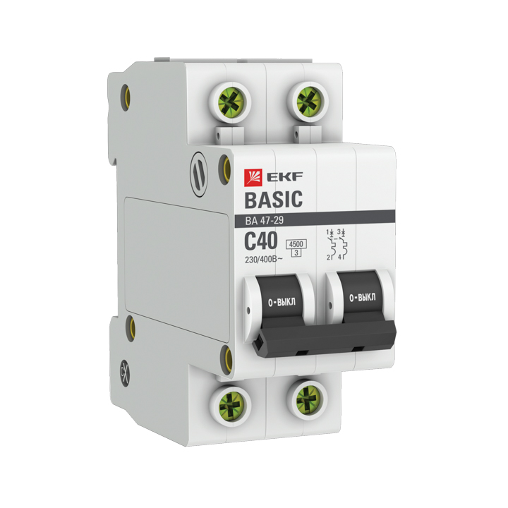 Автоматический выключатель ВА 47-29 2Р 40А 4,5кА характеристика С EKF Basic