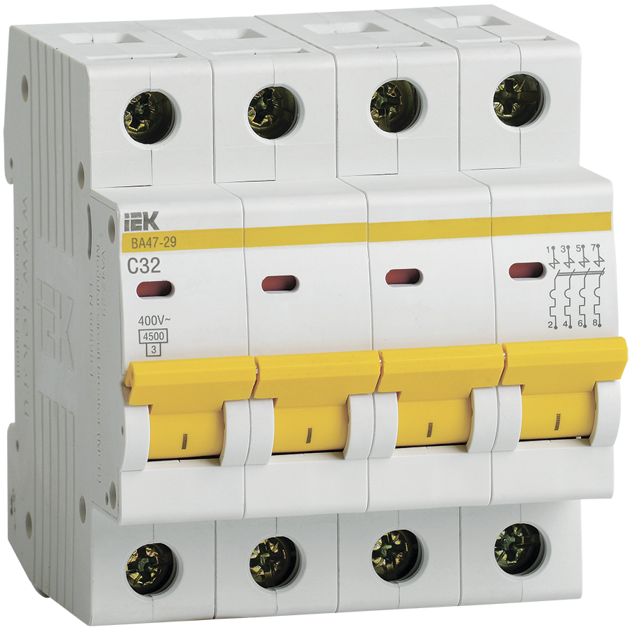 Автоматический выключатель ВА47-29 4Р 32А 4,5кА характеристика С IEK