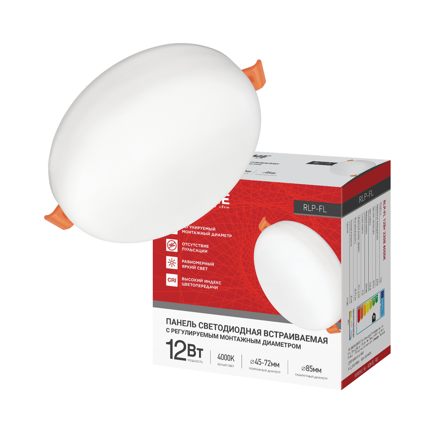 Панель светодиодная встраиваемая круглая RLP 12Вт 230В 6500К 840Лм 170мм белая IP40 IN HOME