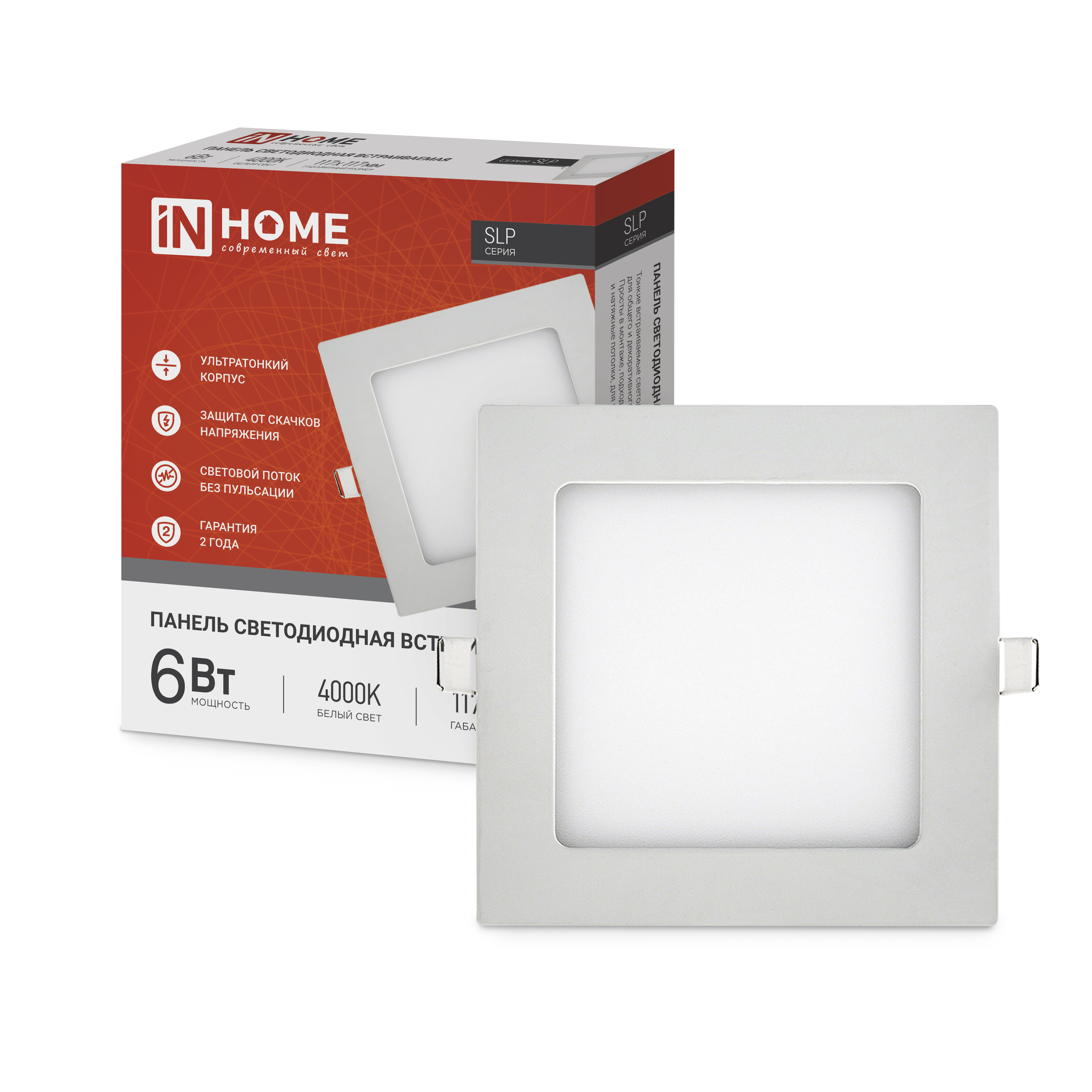 Панель светодиодная встраиваемая квадратная SLP 6Вт 230В 4000К 420Лм 117мм белая IP40 IN HOME