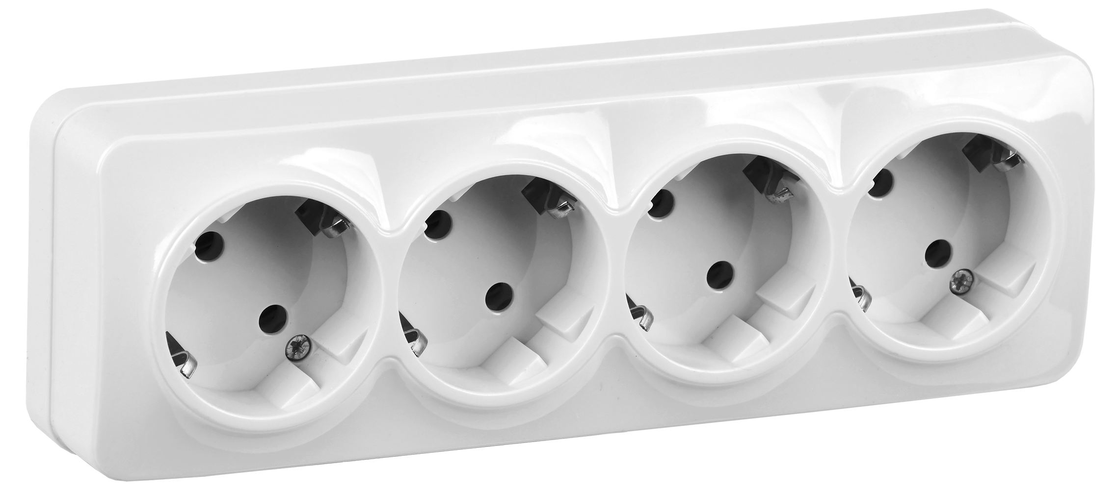 Розетка 4ая с з/к НАКЛАДНАЯ 16А GLORY белая РС24-3-ХБ IEK