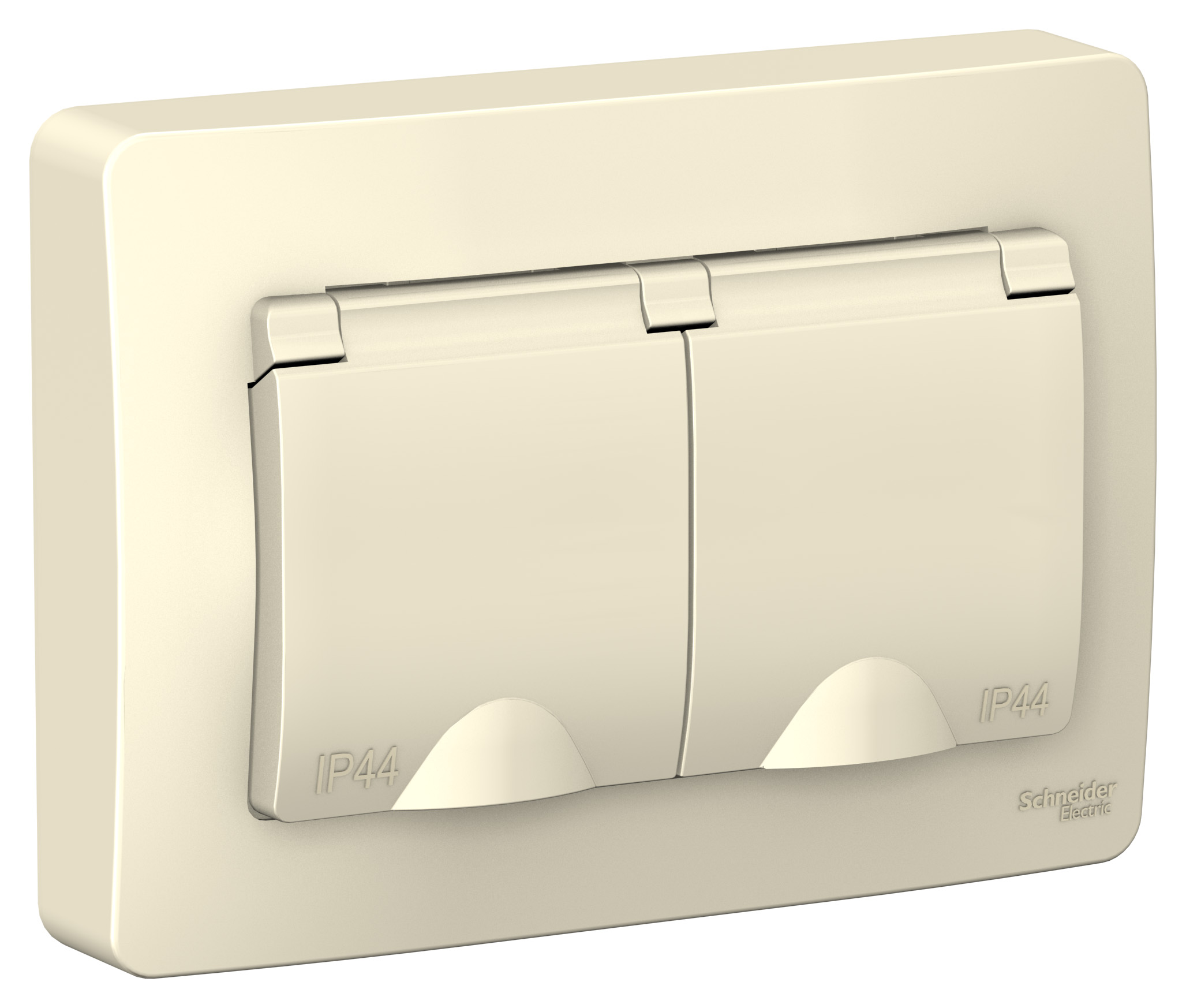 Розетка двойная BLANCA SE с крышкой с заземлением со шторками IP44 молочная