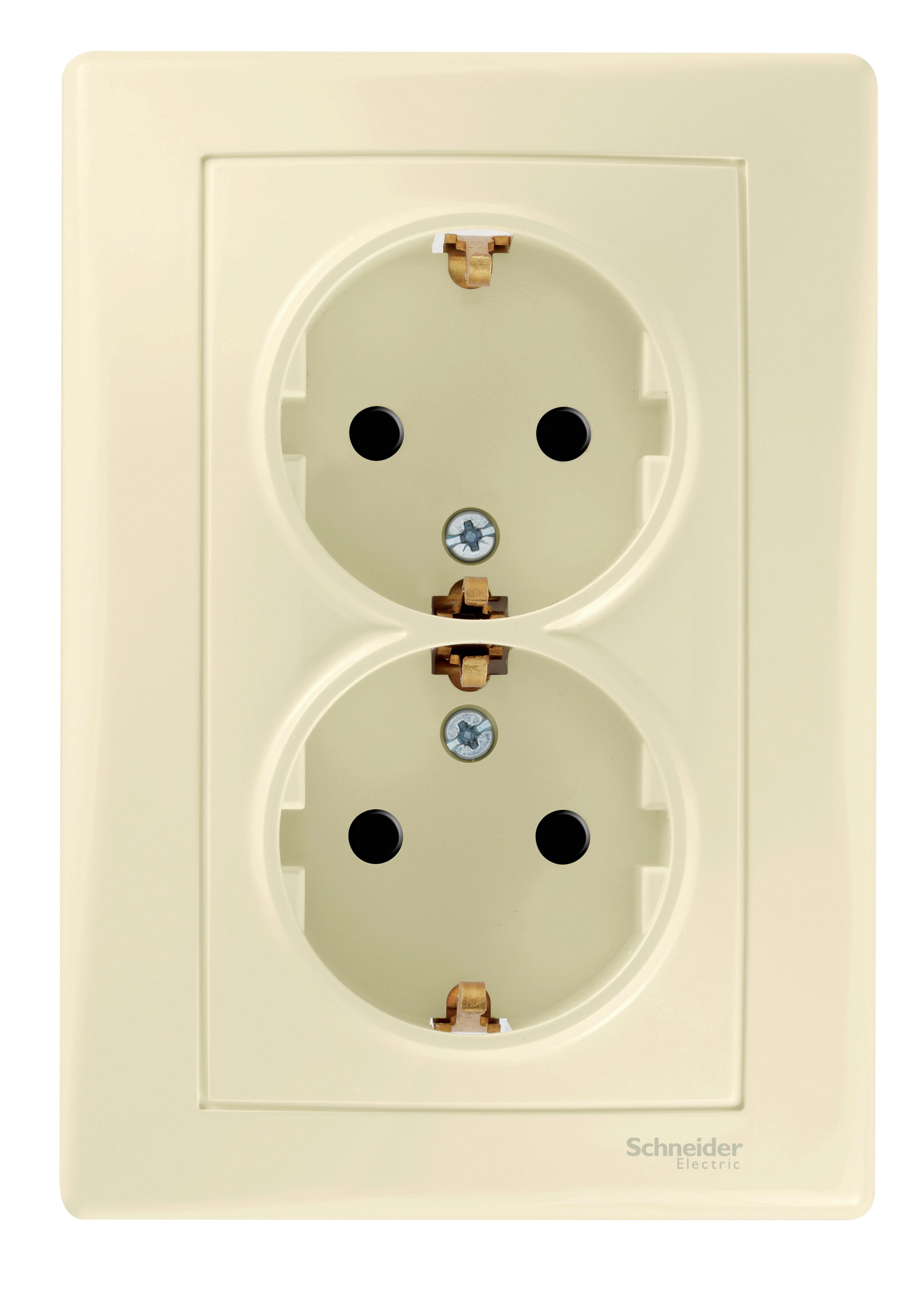 Розетка двойная SEDNA Schneider Electric со шторками с заземлением крем