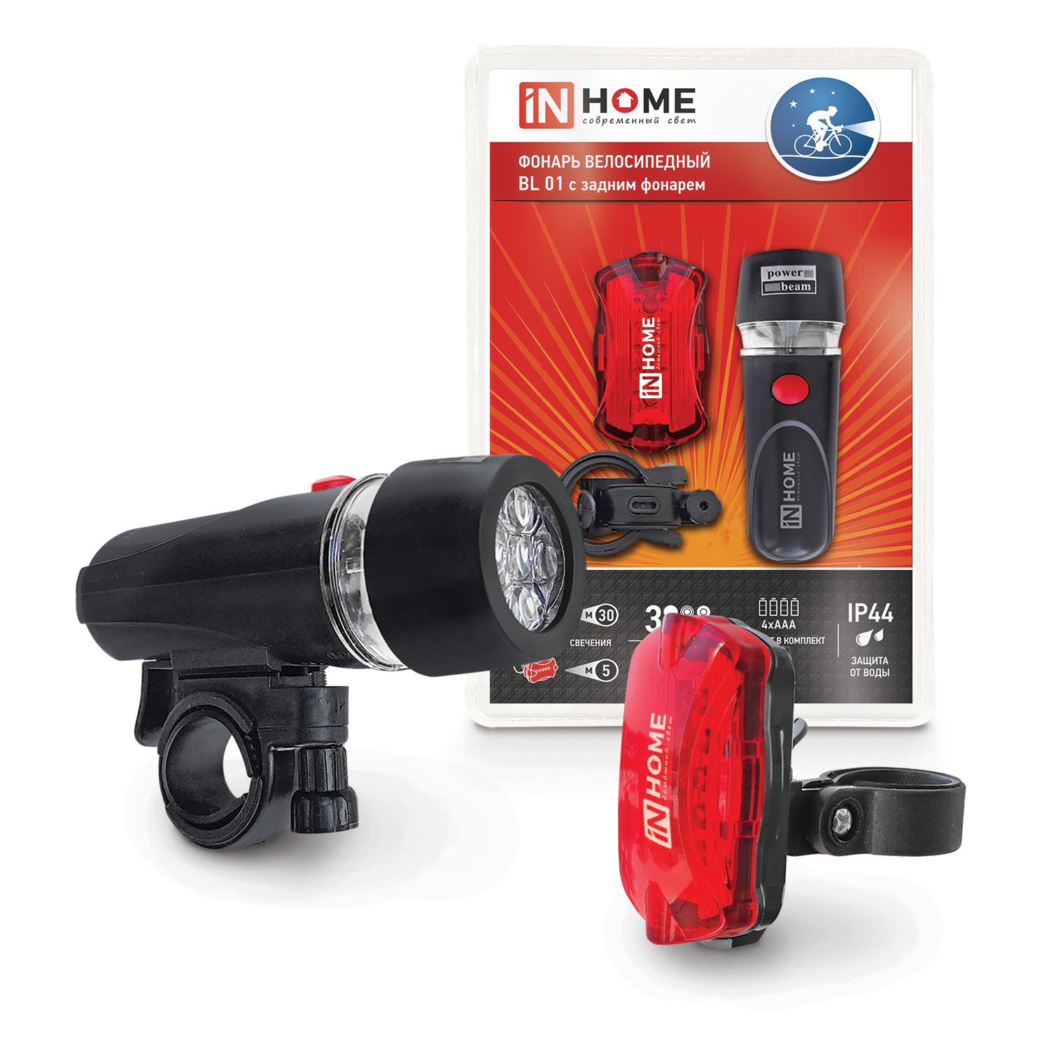 Фонарь велосипедный BL 01 5LED с задним фонарем 4AAA 3 режима с кронштейном ЧЕРНЫЙ IN HOME