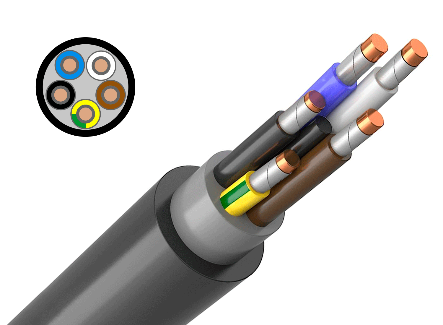 ППГнг-А-FRHF 5х2.5 – кабель силовой медный безгалогенный, не распространяющие горение, с низким дымо- и газовыделением. В качестве проводника в данной модели огнестойкого кабеля используются медные жилы круглой или секторной формы, которые соответствуют классу 1 или 2 по ГОСТ 22483. Изолированные жилы многожильных кабелей, скрученные в сердечник и скрепленные полипропиленовой нитью, имеют различный цвет. Изоляция нулевых жил выполнена в синем цвете. Изоляция жил заземления выполнена в зелено-желтом цвете. Внутренний промежуток сердечника заполнен жгутом из ПВХ-пластиката. Кабель ППГнг(А)-FRHF разработан для применения в условиях перепада рабочих температур от -50 до +50С.