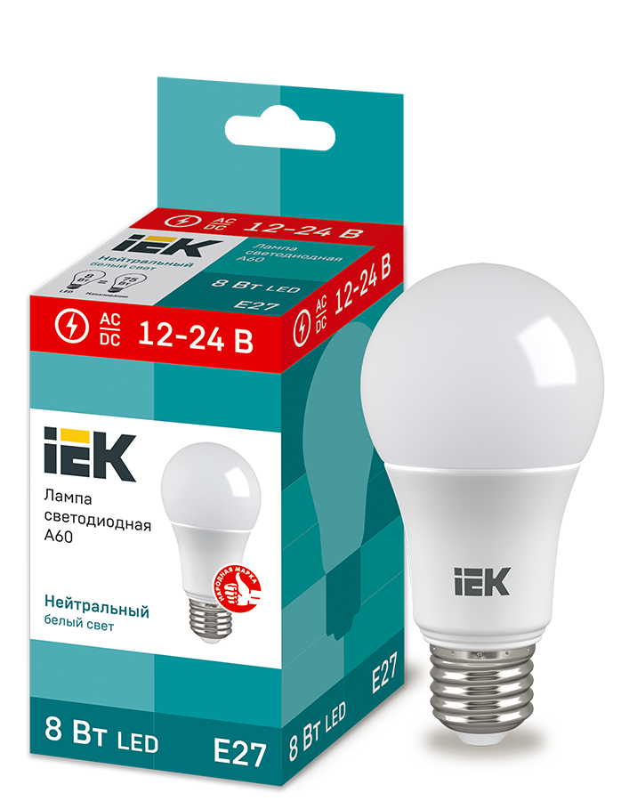 Лампа LED A60 груша 8Вт 12-24В 4000К E27 IEK