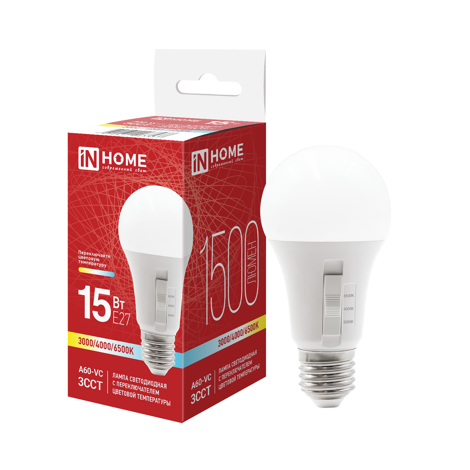 Лампа светодиодная LED-A60-VC 15Вт 230В Е27 1500Лм 3ССТ 3000/4000/6500К с переключателем на лампе IN HOME