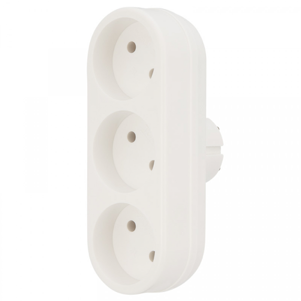 Тройник электрический линейный 6-10 А без заземления белый REXANT