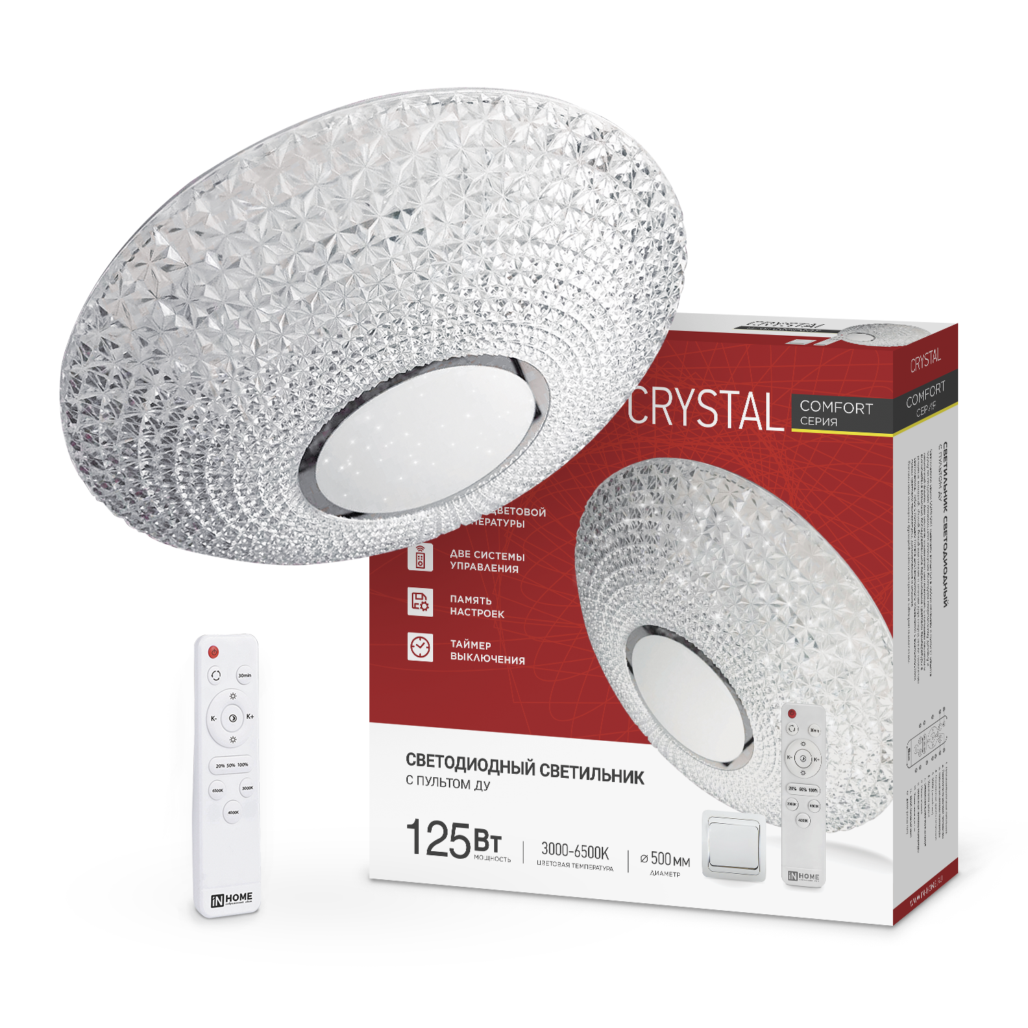 Светильник светодиодный COMFORT CRYSTAL 125Вт 230В 3000-6500K 10000Лм 500x115мм с пультом ДУ IN HOME