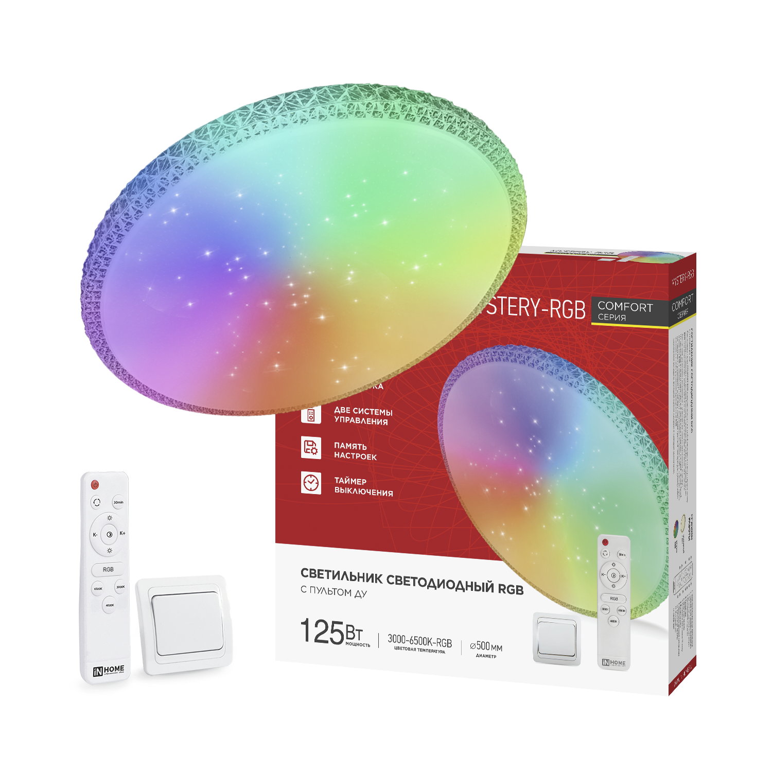 Светильник светодиодный COMFORT MYSTERY-RGB 125Вт 230В 3000-6500K 10000Лм 500x80мм с пультом ДУ IN HOME