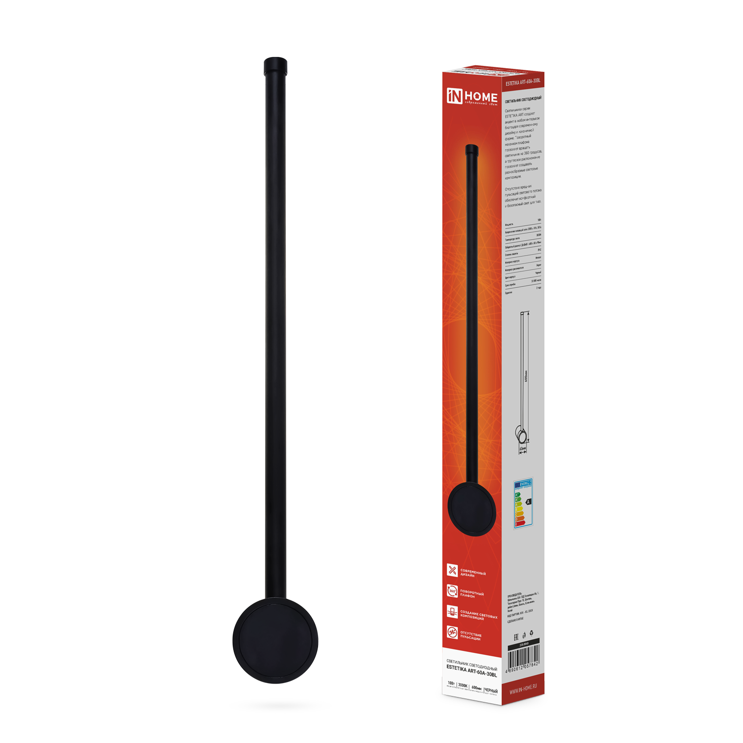 Светильник светодиодный ESTETIKA ART-60A-30BL 10Вт 230В 3000K 700Лм 600х60x98 черный IN HOME