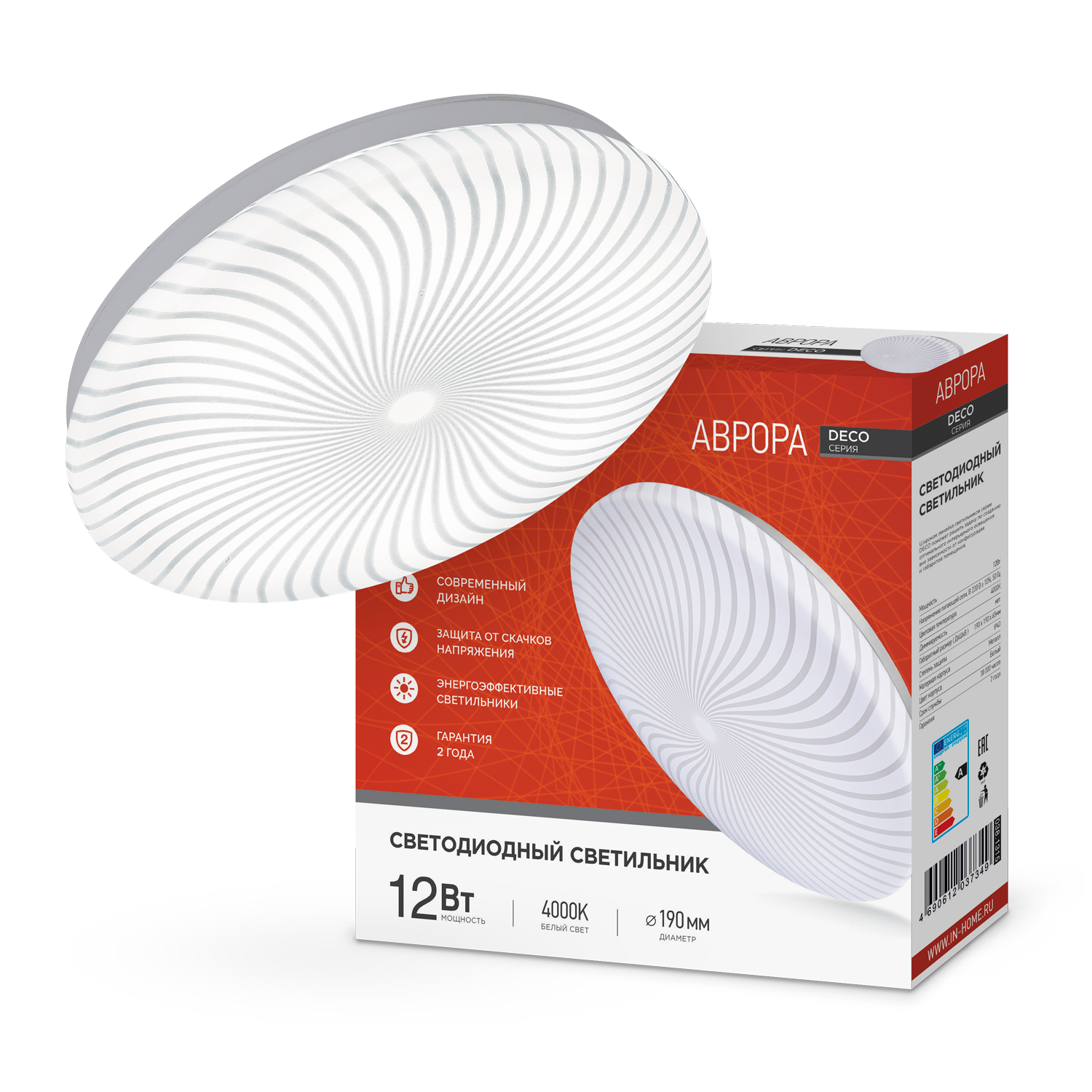 Светильник светодиодный серии DECO АВРОРА 12Вт 230В 4000К 1080Лм 210х65мм IN HOME