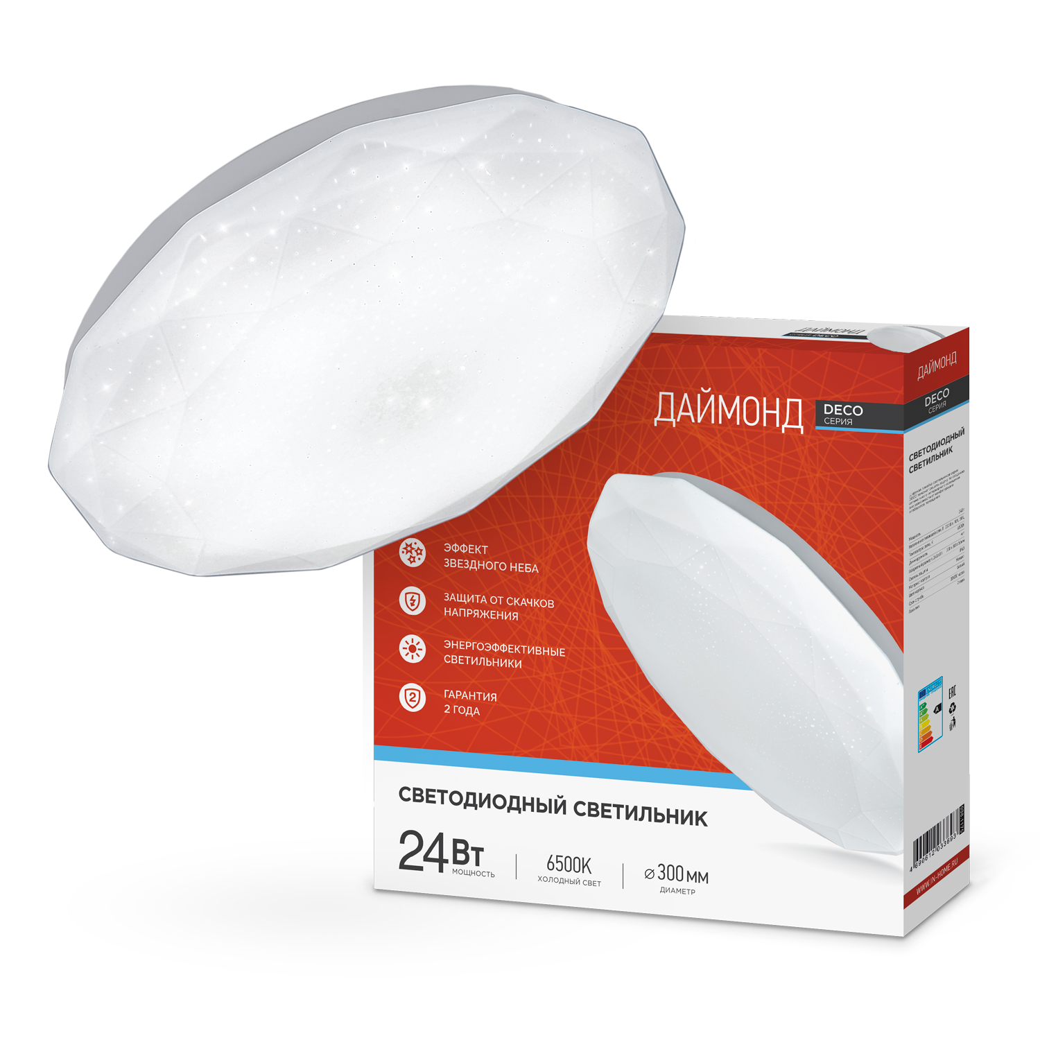 Светильник светодиодный серии DECO ДАЙМОНД 24Вт 230В 6500К 2160Лм 330х55мм IN HOME