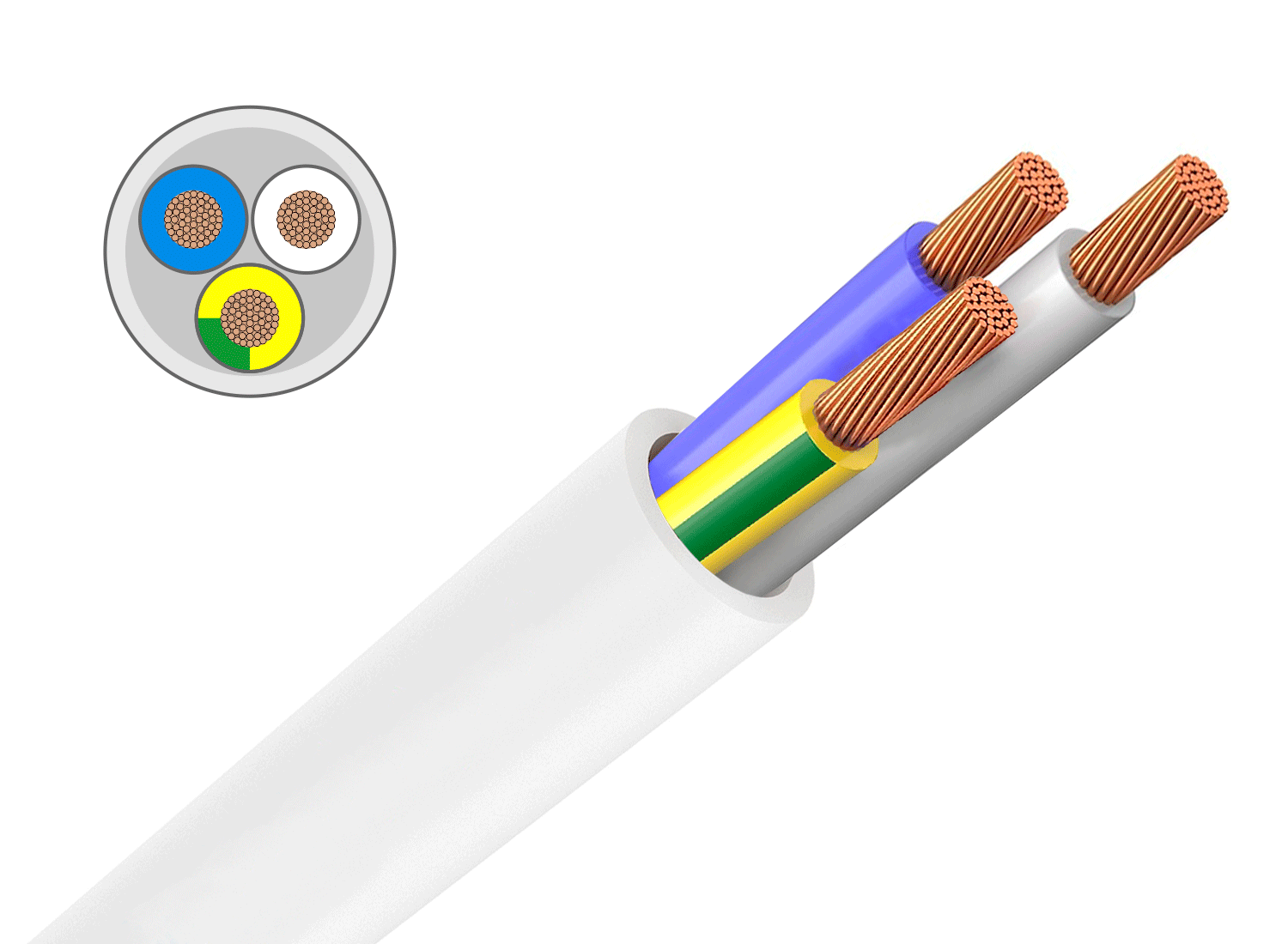 1) Многопроволочная скрученная жила из меди2) ПВХ-изоляция