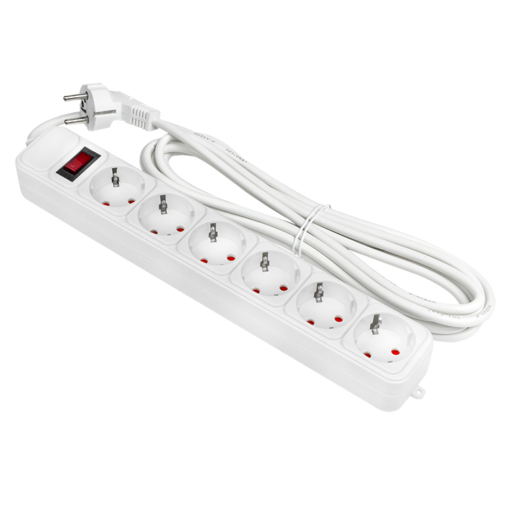 Сетевой фильтр 6 мест 5м 16А/3,2кВт с выключателем с заземлением ПВС 3х1,0 Блокбастер XL EKF PROxima