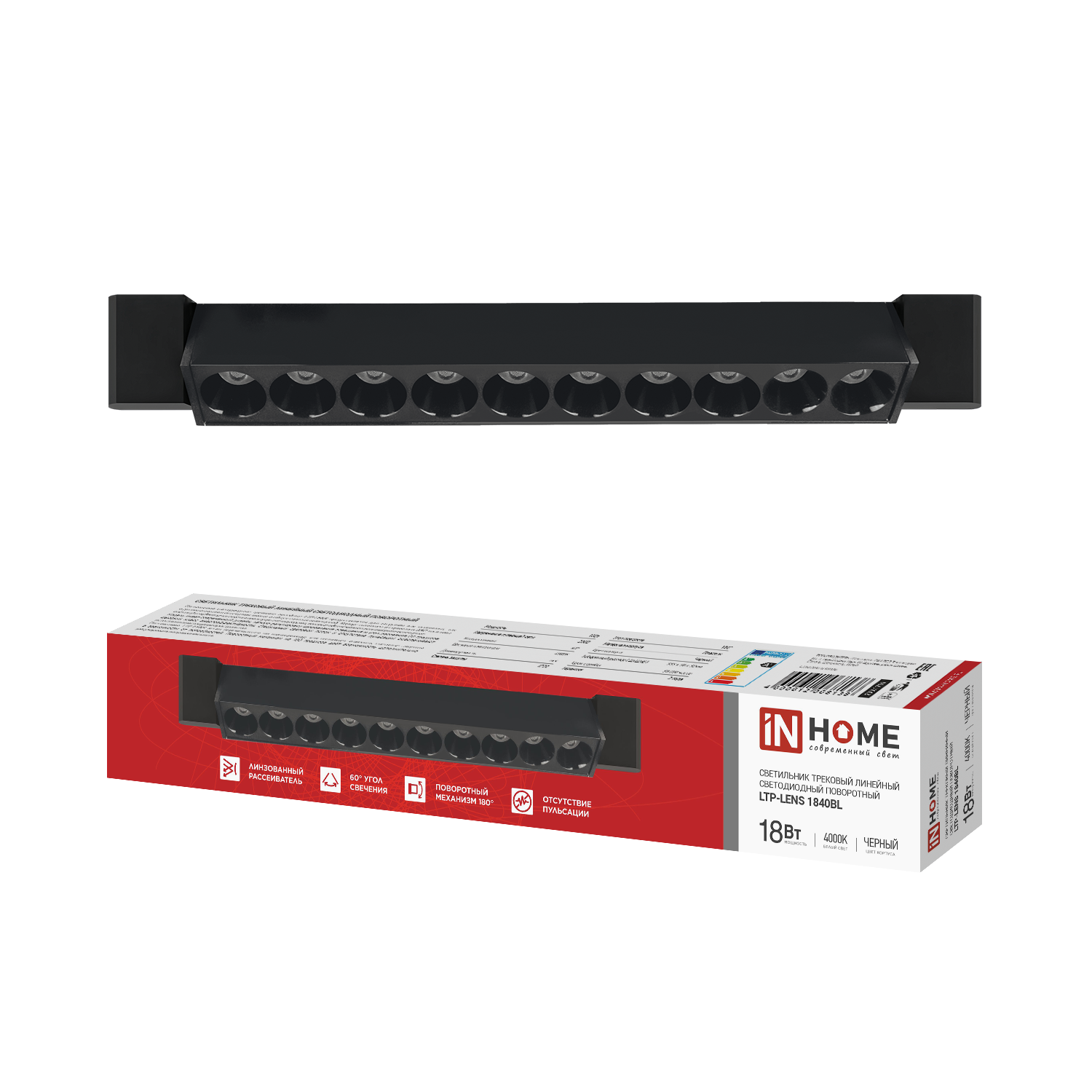 Светильник трековый линейный светодиодный поворотный LTP-LENS 3540BL 35Вт 4000К 60гр 598мм черный IN HOME в Иркутске