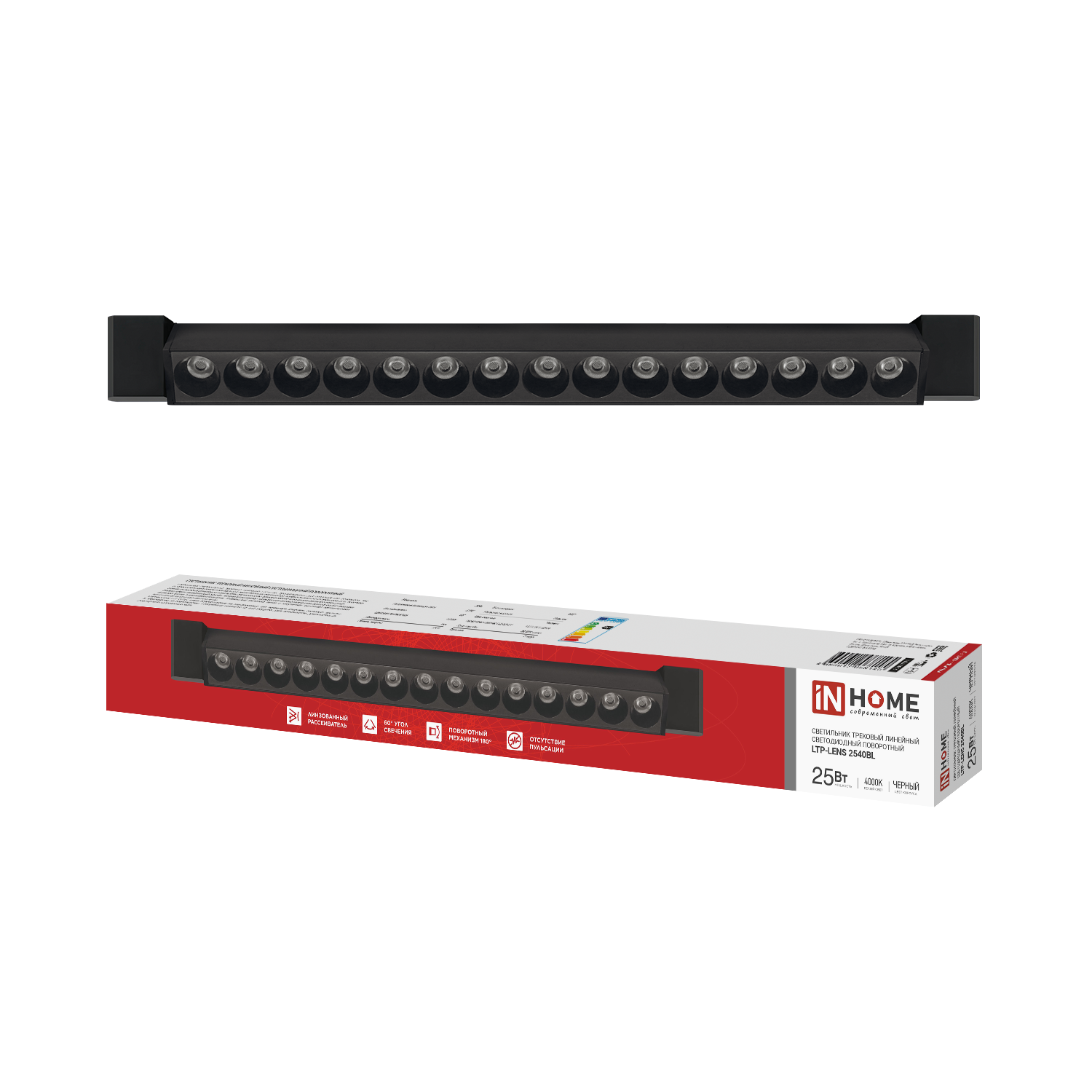 Светильник трековый линейный светодиодный поворотный LTP-LENS 3540BL 35Вт 4000К 60гр 598мм черный IN HOME в Иркутске