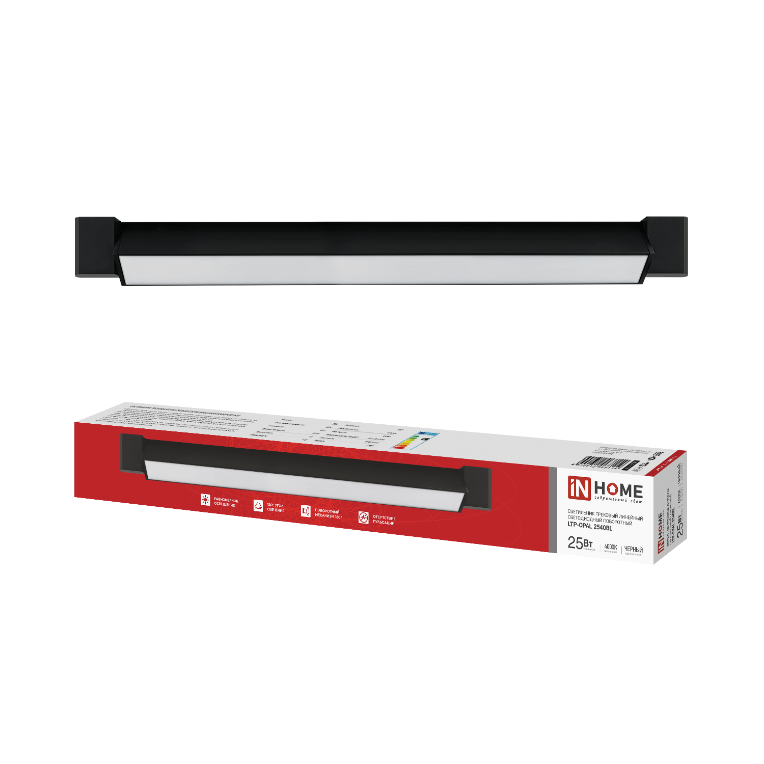 Светильник трековый линейный светодиодный поворотный LTP-OPAL 3540BL 35Вт 4000К 120гр 598мм черный IN HOME в Иркутске