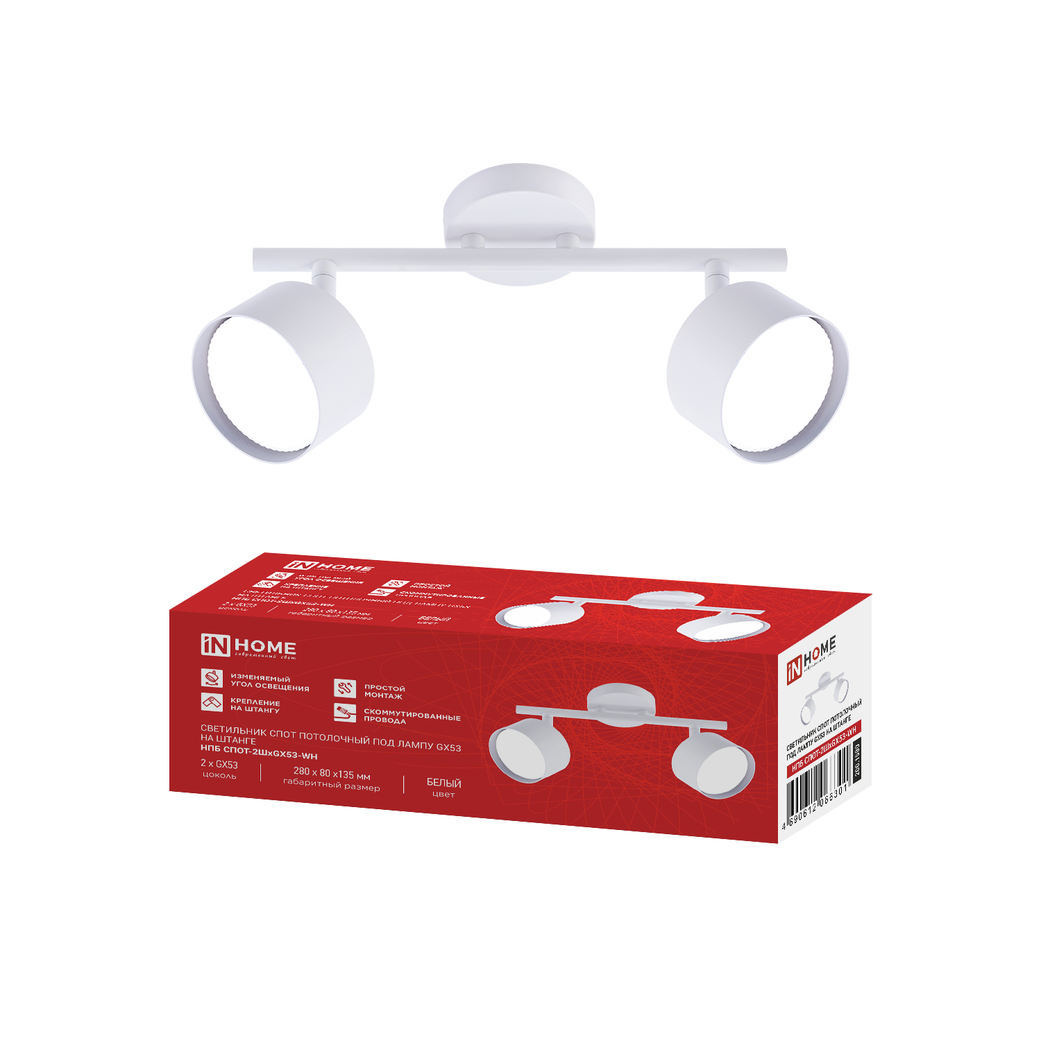 Светильник потолочный НПБ-СПОТ-GX53 2хSBM-NL-WH с подсветкой 220x80x90мм белый IN HOME в Иркутске