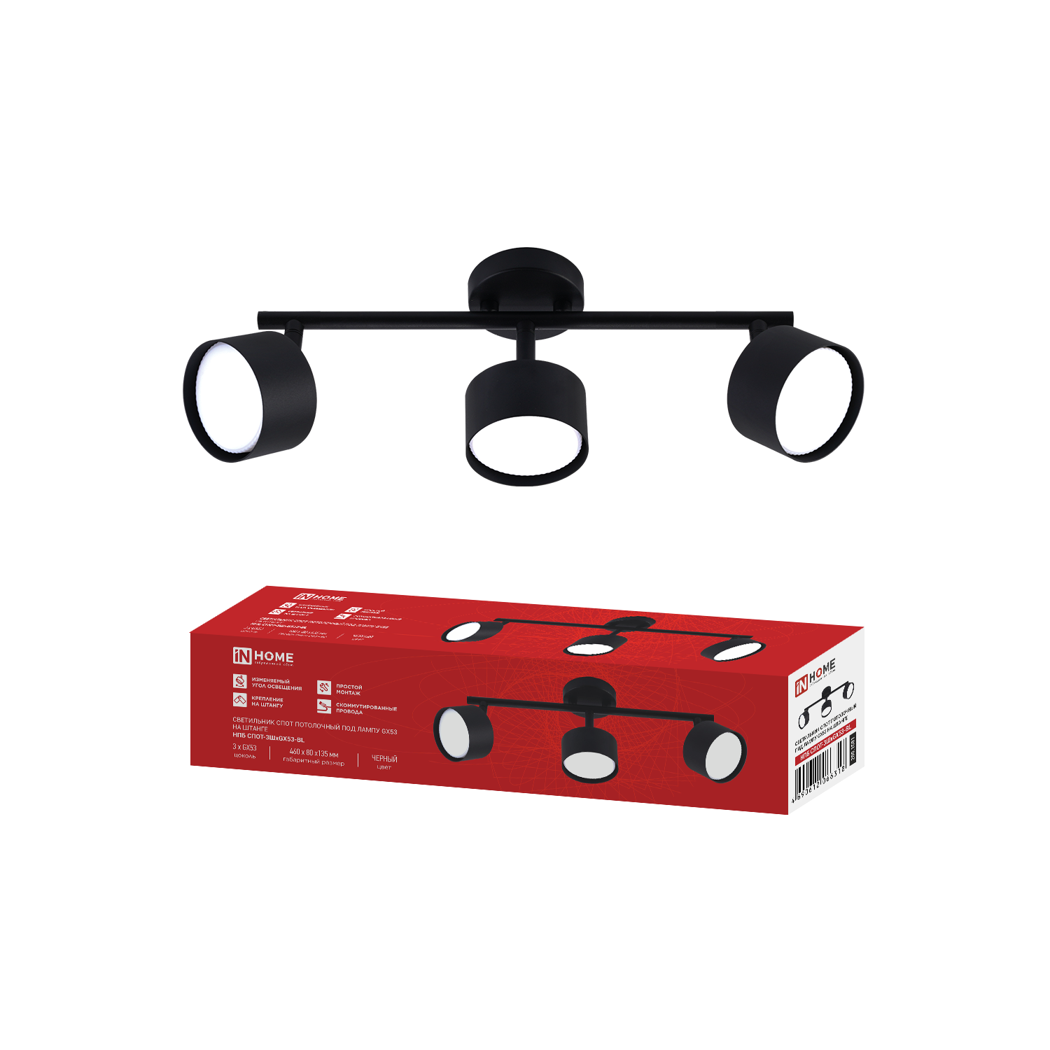 Светильник потолочный НПБ СПОТ-6ExGU10-AR-BL под GU10 с регулир. базой черный IN HOME в Иркутске