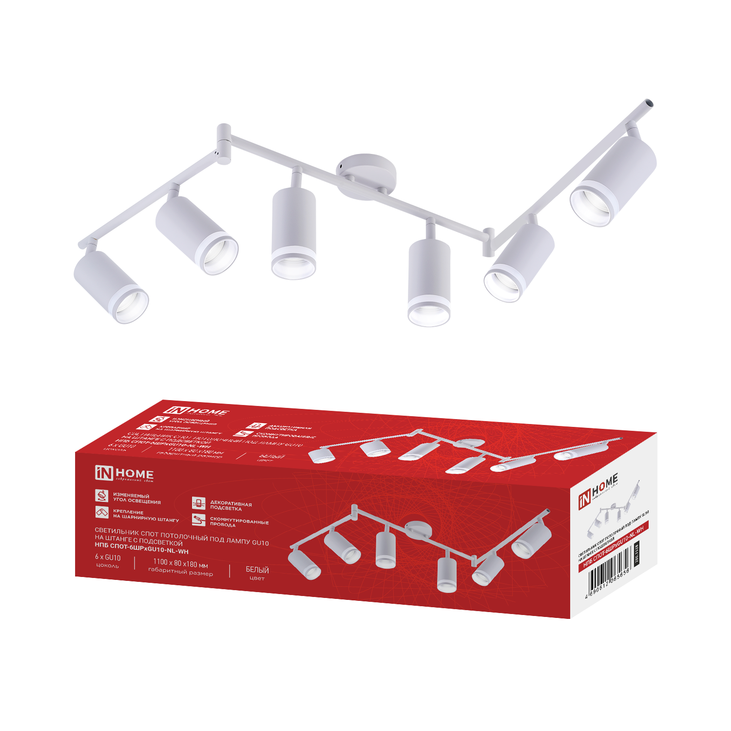 Светильник потолочный НПБ СПОТ-GU10-AR-WH под GU10 55х55x140мм белый IN HOME в Иркутске