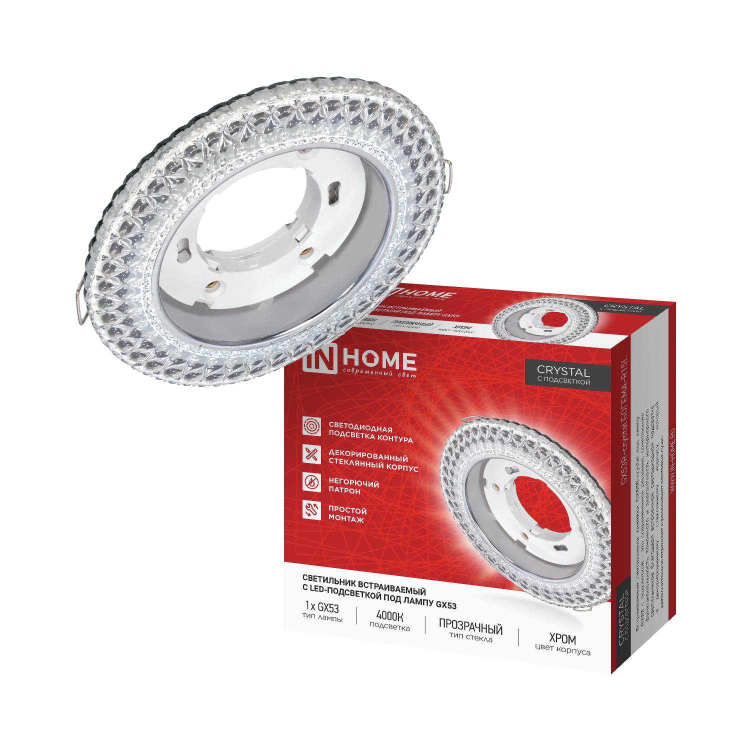 Светильник встраиваемый GX53R-SOFT NL-WH под GX53 c подсветкой, 110х63мм белый IN HOME в Иркутске
