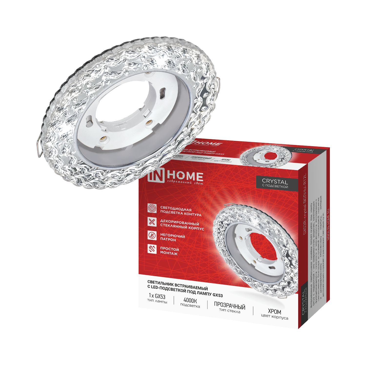 Светильник встраиваемый GX53R-standard RC металл под лампу GX53 230В хром IN HOME арт. Светильник встраиваемый GX53R-standard RC металл под лампу GX53 230В хром IN HOME в Иркутске Иркутске