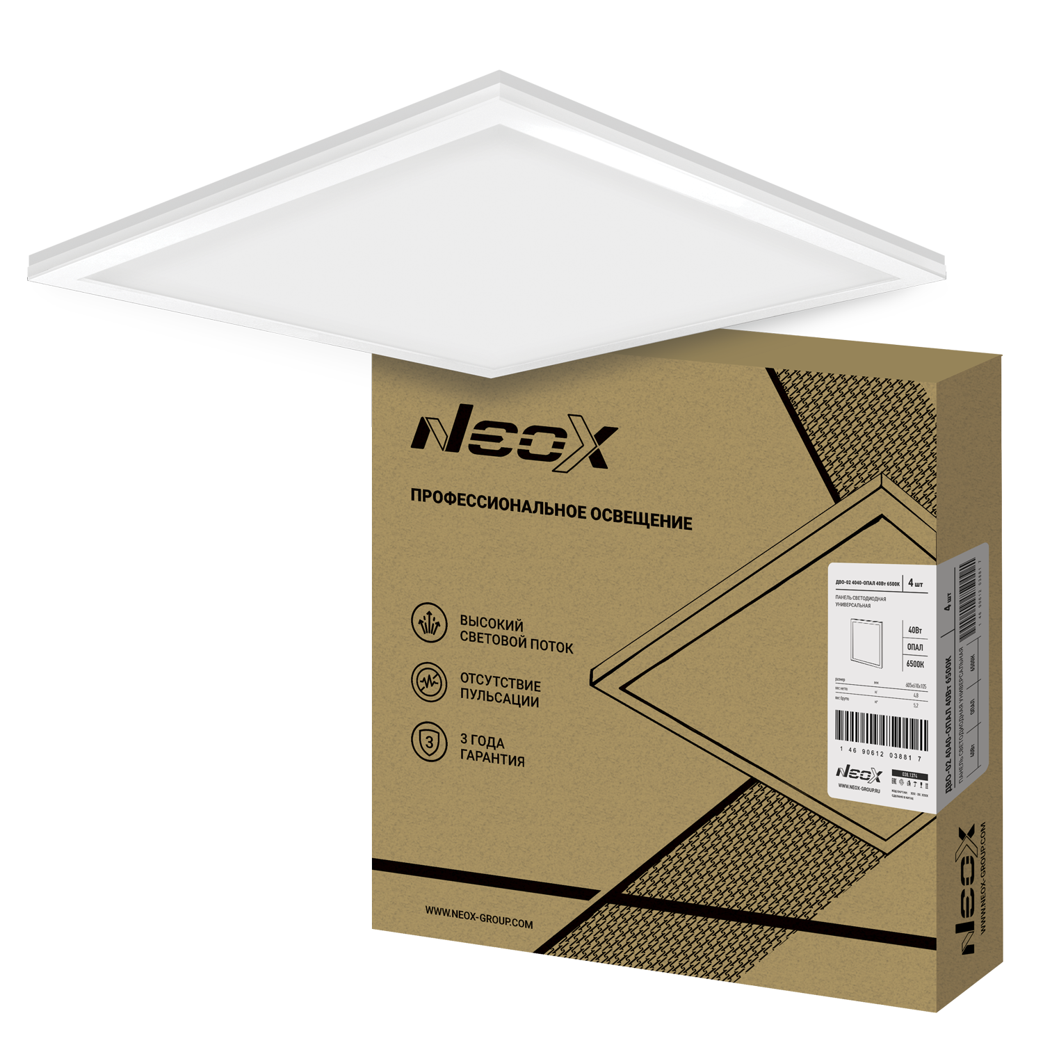 Панель светодиодная ультратонкая ДВО-SLIM 5040 50Вт 4000К без ЭПРА IP40 595х595х8,5мм NEOX в Иркутске