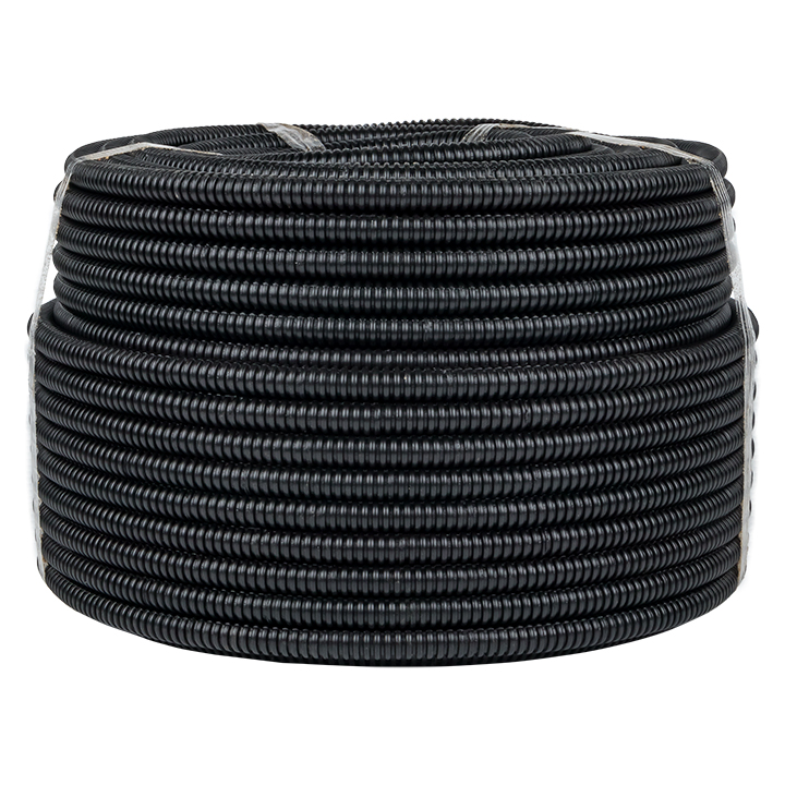 Труба изготовлена из полиэтилена низкого давления (ПНД), обладающего высокой прочностью и устойчивостью к внешним факторам. Гофрированная структура обеспечивает гибкость и позволяет прокладывать кабель по сложным трассам. Внутри предусмотрена протяжка (зонд), облегчающая монтаж кабеля. Внутренний диаметр составляет 10,7 мм, длина бухты — 100 метров. Черный цвет обеспечивает дополнительную устойчивость к ультрафиолетовому излучению.