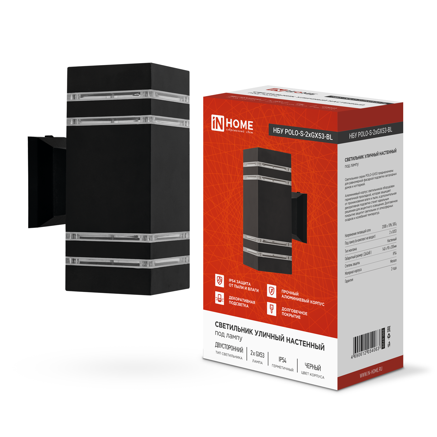 Светильник POLO-S-2xGX53-BL IN HOME — практичное и стильное решение для создания архитектурной и декоративной подсветки фасадов.