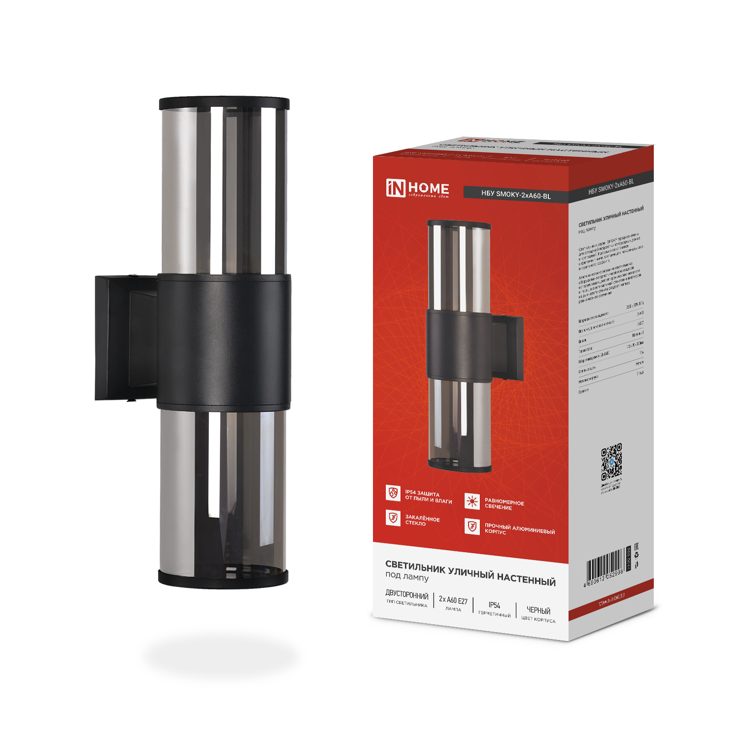 Светильник SMOKY-2хA60-BL IN HOME — практичное и эстетичное решение для создания атмосферной фасадной подсветки.