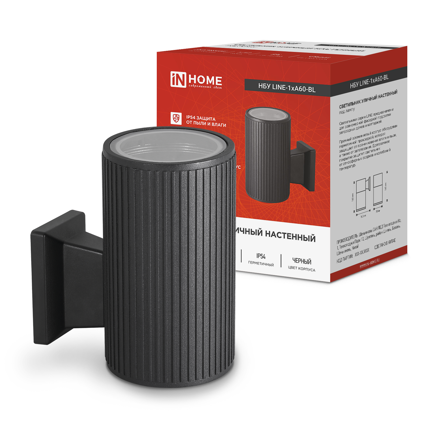 Светильник LINE-1хA60-BL IN HOME — практичное и стильное решение для создания современной фасадной подсветки и архитектурного освещения.