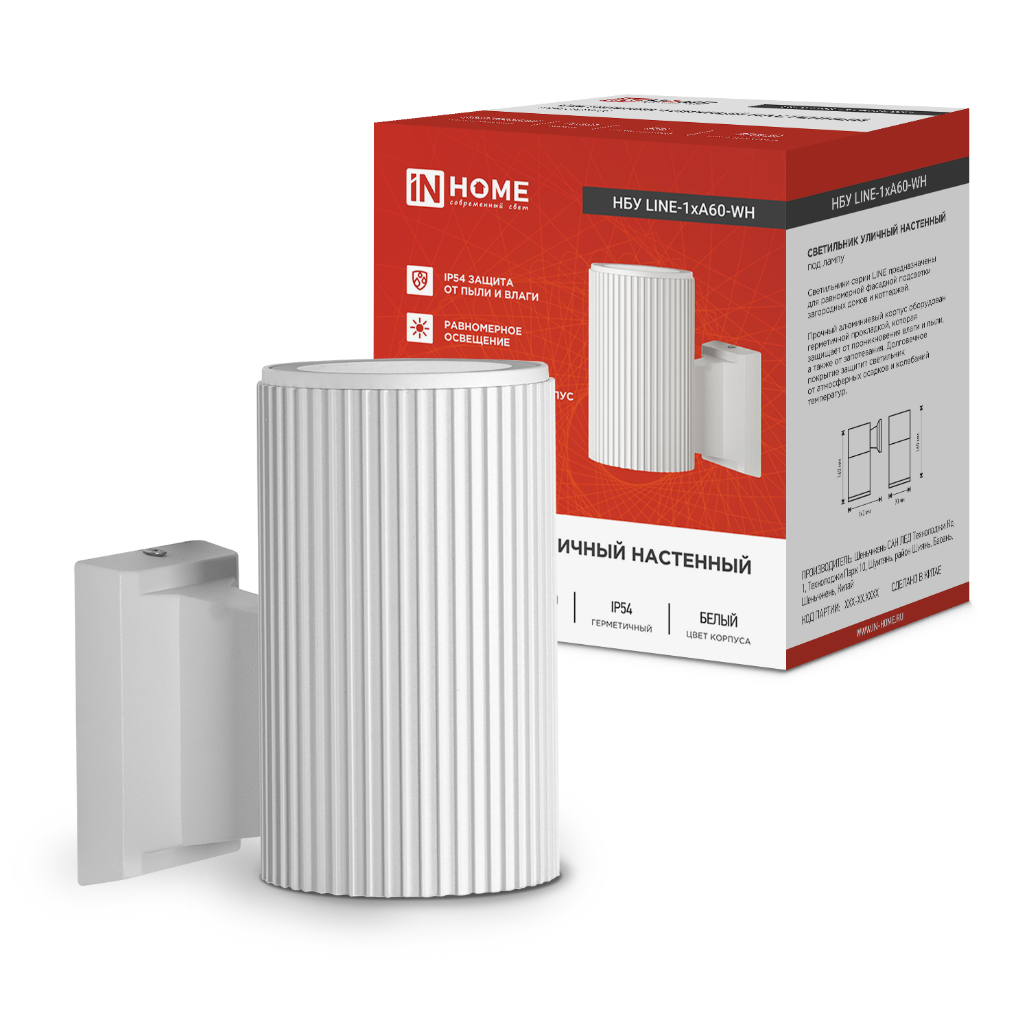 Светильник LINE-1хA60-WH IN HOME — практичное решение для создания функционального и декоративного освещения фасадов.