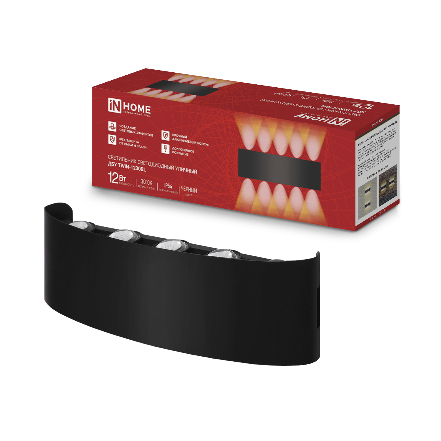 Светильник уличный светодиодный ДБУ TWIN-1230BL 12Вт 3000К 270х80 черный IP54 IN HOME