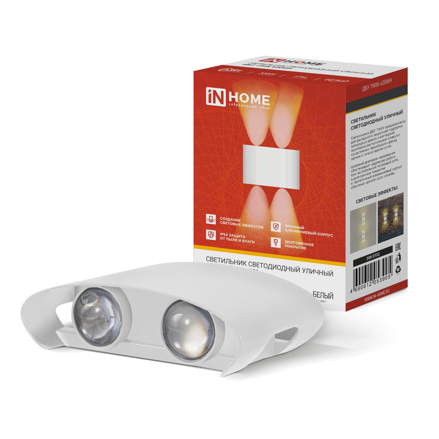 Светильник уличный светодиодный ДБУ TWIN-830WH 8Вт 3000К IP54 белый IN HOME в Иркутске