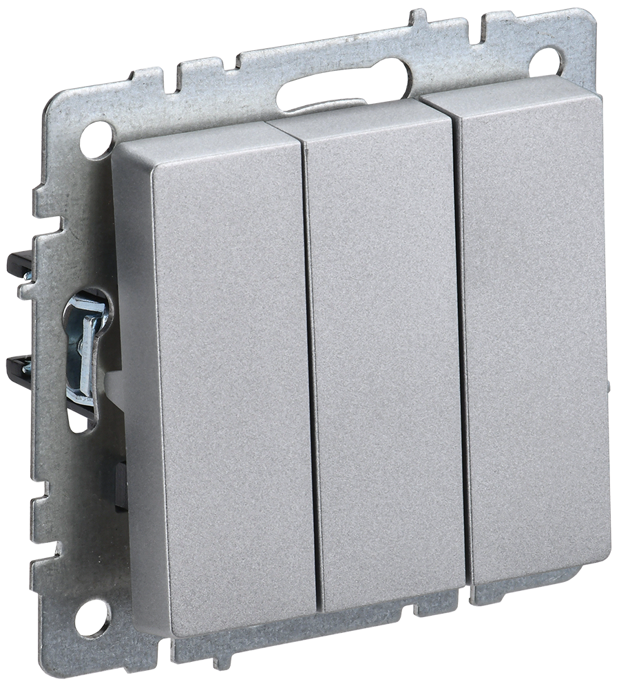 Выключатель трехклавишный 10А BRITE IEK алюминий